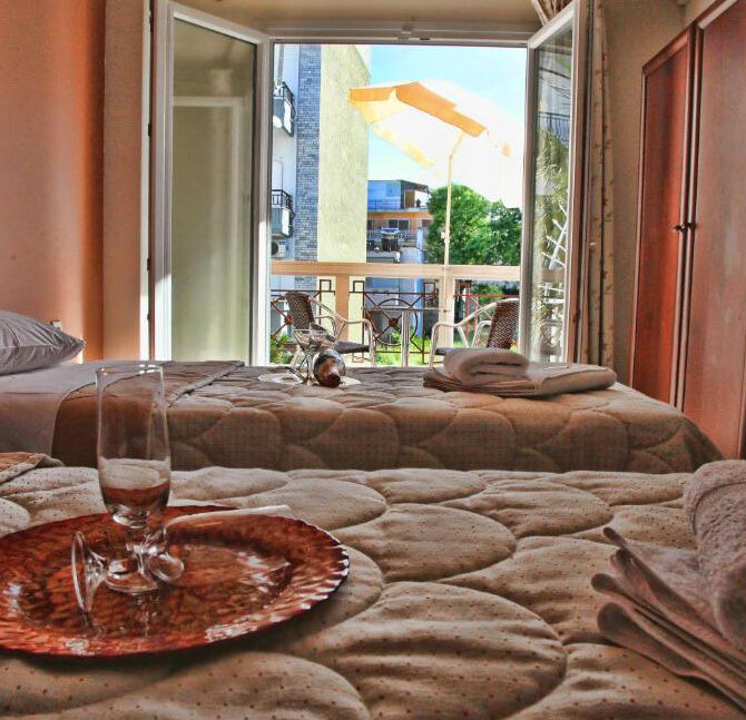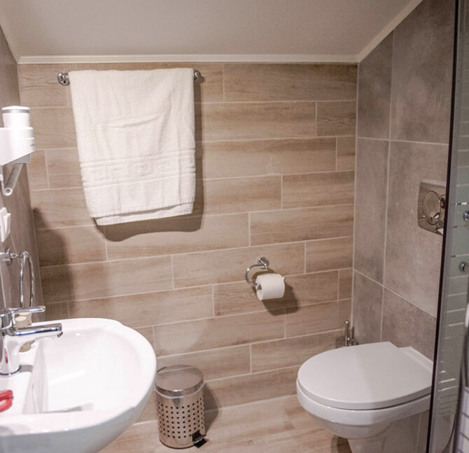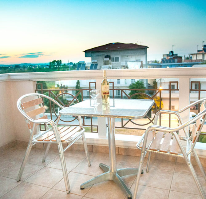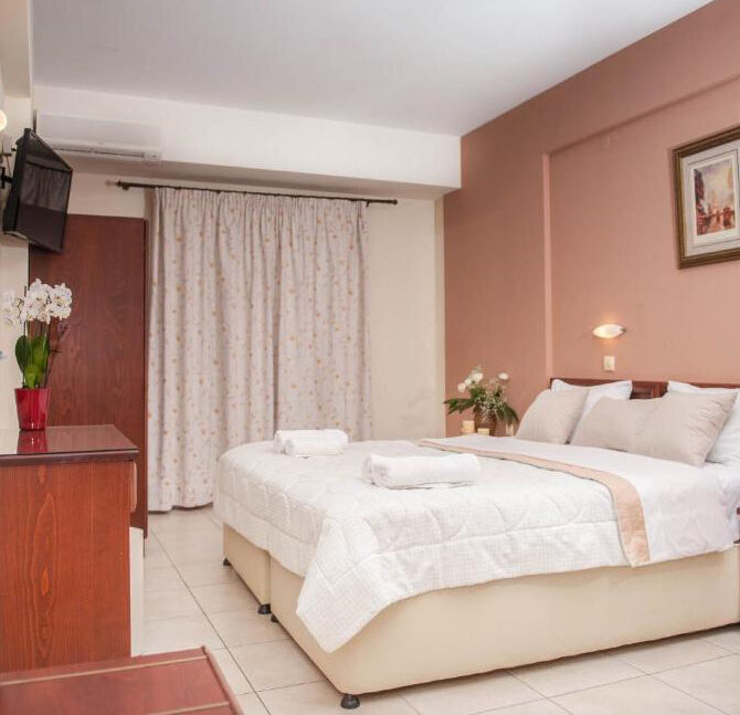 The double rooms of Hotel Vizantio have an area of 18 sq m and feature a comfortable double or twin beds, offering rest and comfort. Bright and spacious, they include air conditioning and a balcony with a magnificent view of the imposing Mount Olympus - the ideal setting for moments of relaxation.