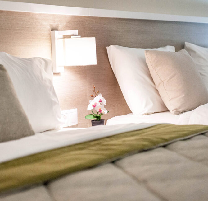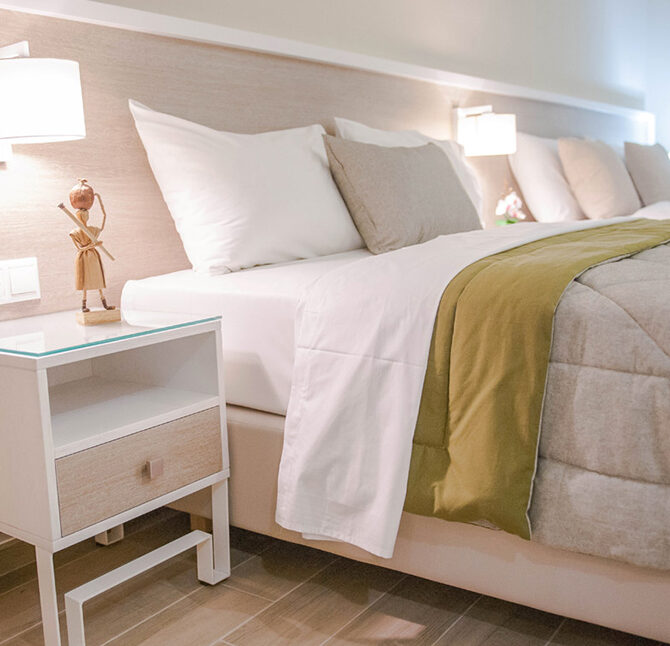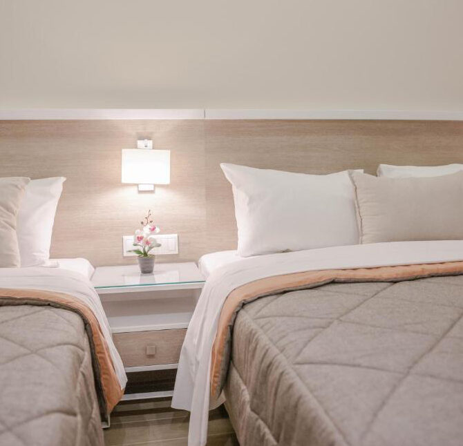 The Quadruple Rooms of Hotel Vizantio are an ideal choice for families or groups. They have a flexible layout, with two single beds and one double or two double beds, offering comfortable accommodation for up to four people.